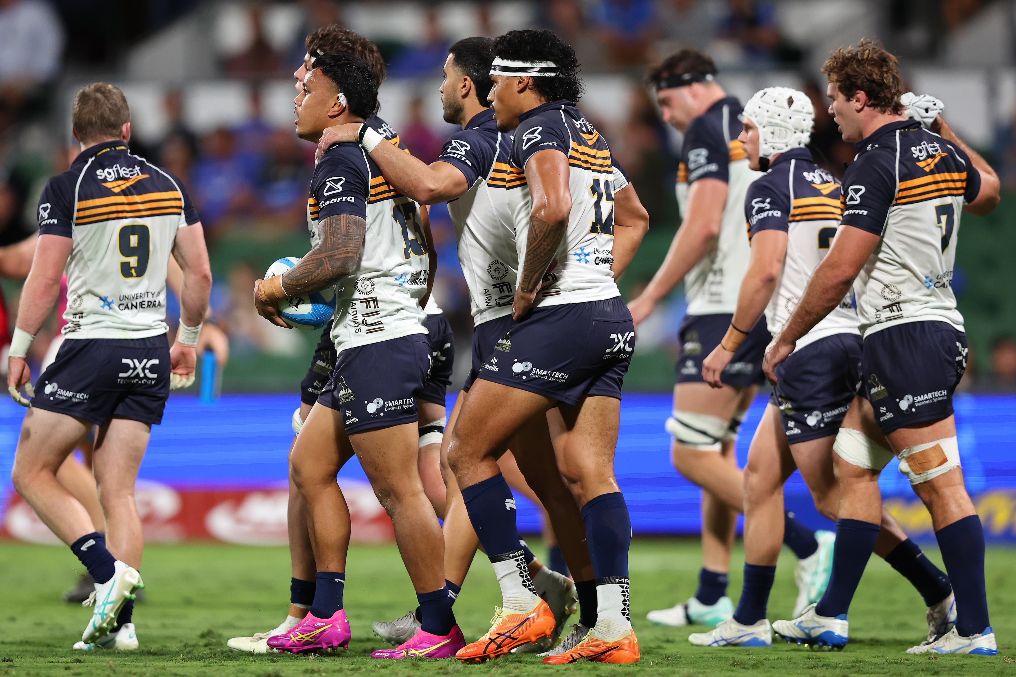 The game entered another topsy-turvy phase with both teams making set-piece errors. As half-time beckoned, the away side turned over an opposition lineout deep in their territory and the ball was spun out wide for Toole’s ninth try of the season. The Brumbies led by seven heading into the break.